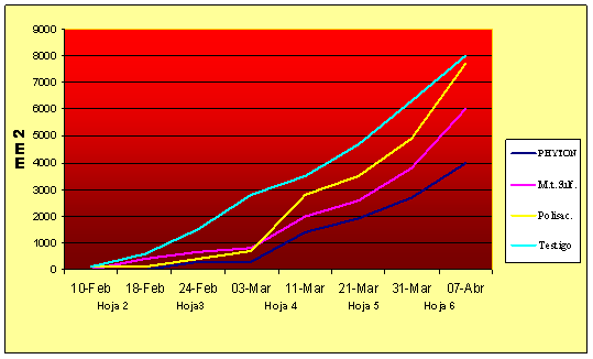 Cuadro 1. Desarrollo del área foliar lesionada en relación a la emisión foliar.